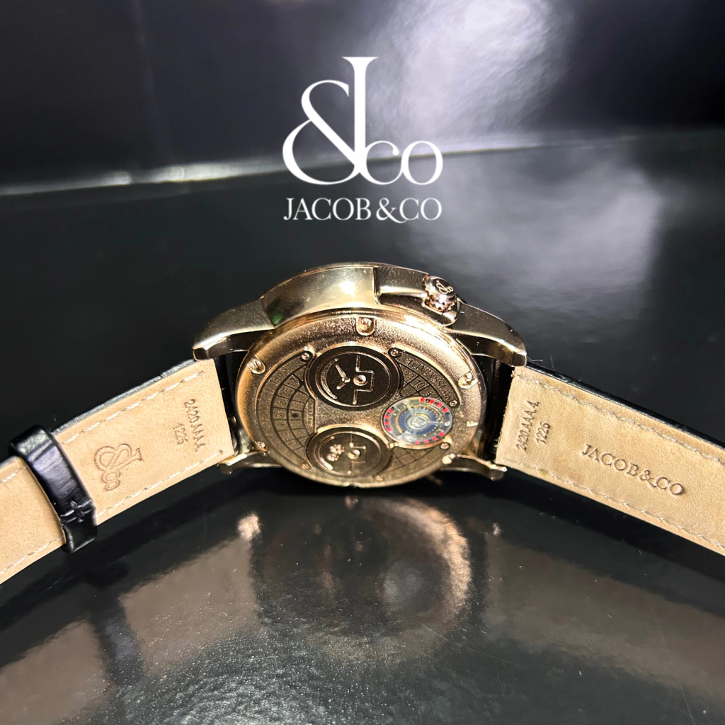 Jacob & Co. Cassino com uma roleta integrada é a combinação perfeita entre alta relojoaria e design inovador. Este relógio não é apenas um acessório; é uma verdadeira obra de arte que vai atrair todos os olhares.
